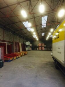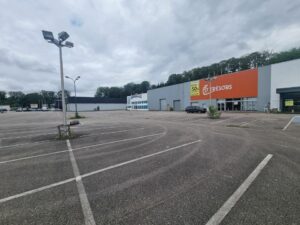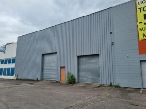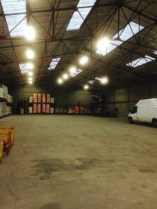 Un bâtiment à usage d'entrepôt d'une surface de 1000 m²; parking en commun avec les autres occupants,